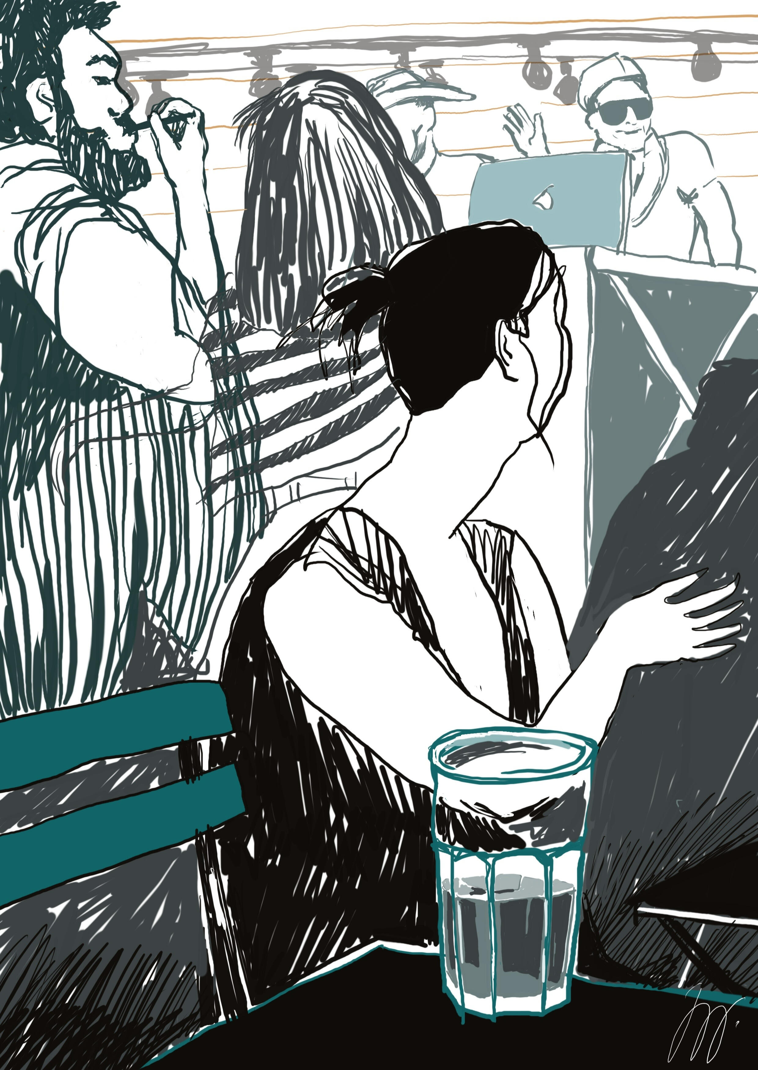 Kafe, 20x20cm, olej na plátně, 2017 - soukromá sbírka